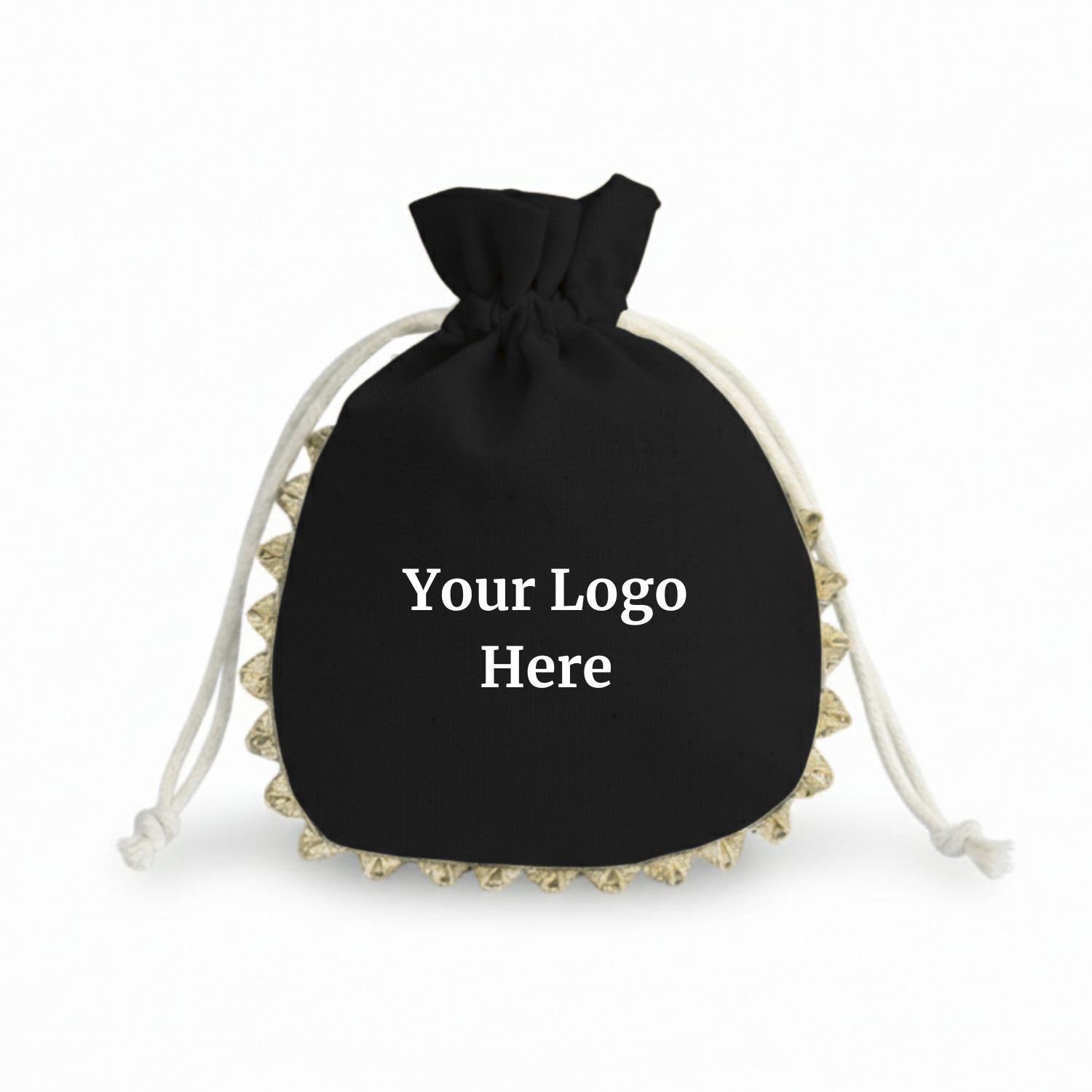 Be the first to review “Obsidian Black Cotton Drawstring Pouches with Golden Lace & Custom Logo – 100 Pcs”